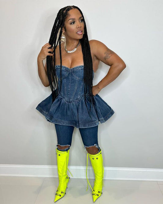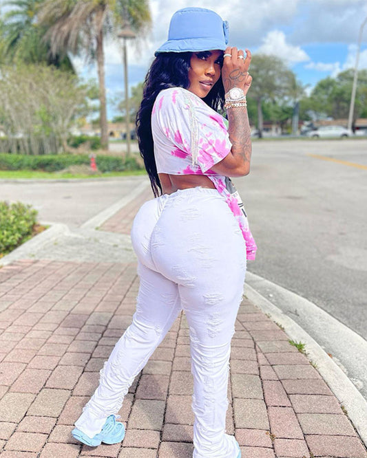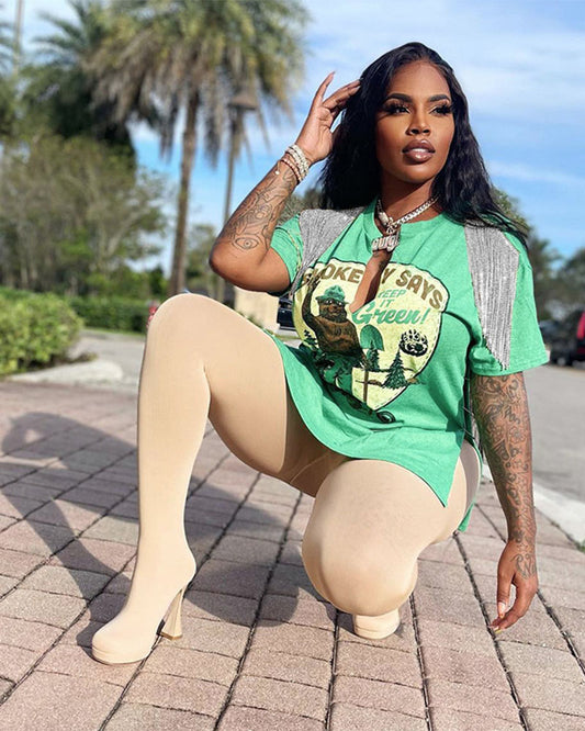 Hip-hop street casual tassel straps short-sleeved T-shirt